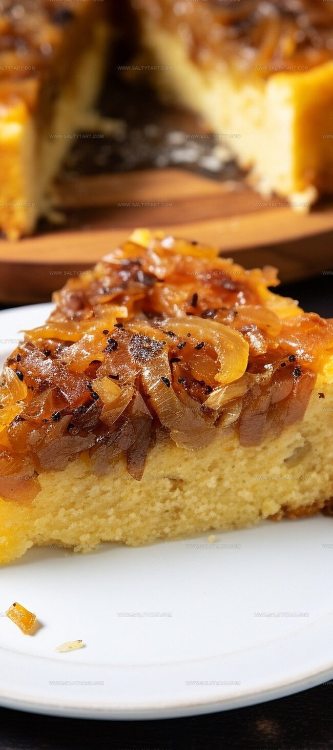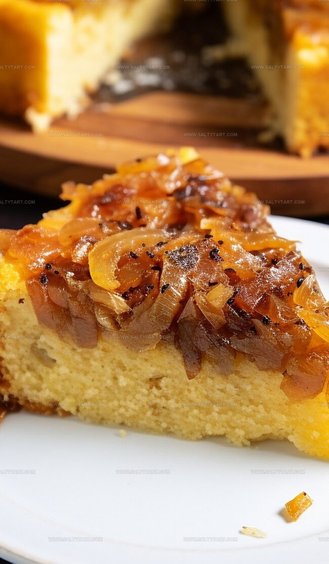 This is a savory cake that balances both sweet and savory flavors. The combination of caramelized onions, brown sugar, and spices creates a unique taste profile that works as a side dish or appetizer.