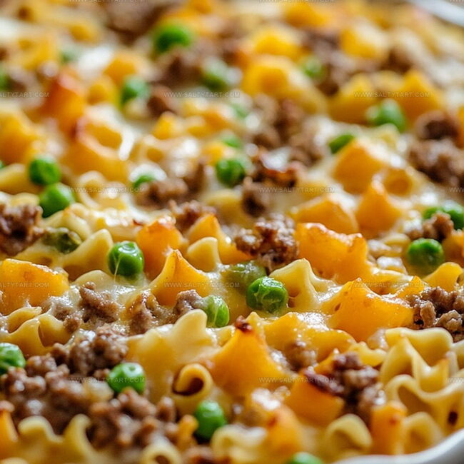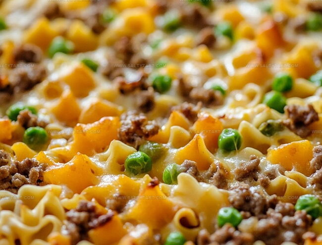 - Crown the casserole with a generous sprinkle of shredded cheddar and mozzarella cheeses.