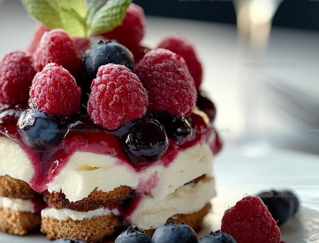 - Generously scatter a vibrant medley of mixed berries atop the cream layer, creating a colorful and textural dimension.