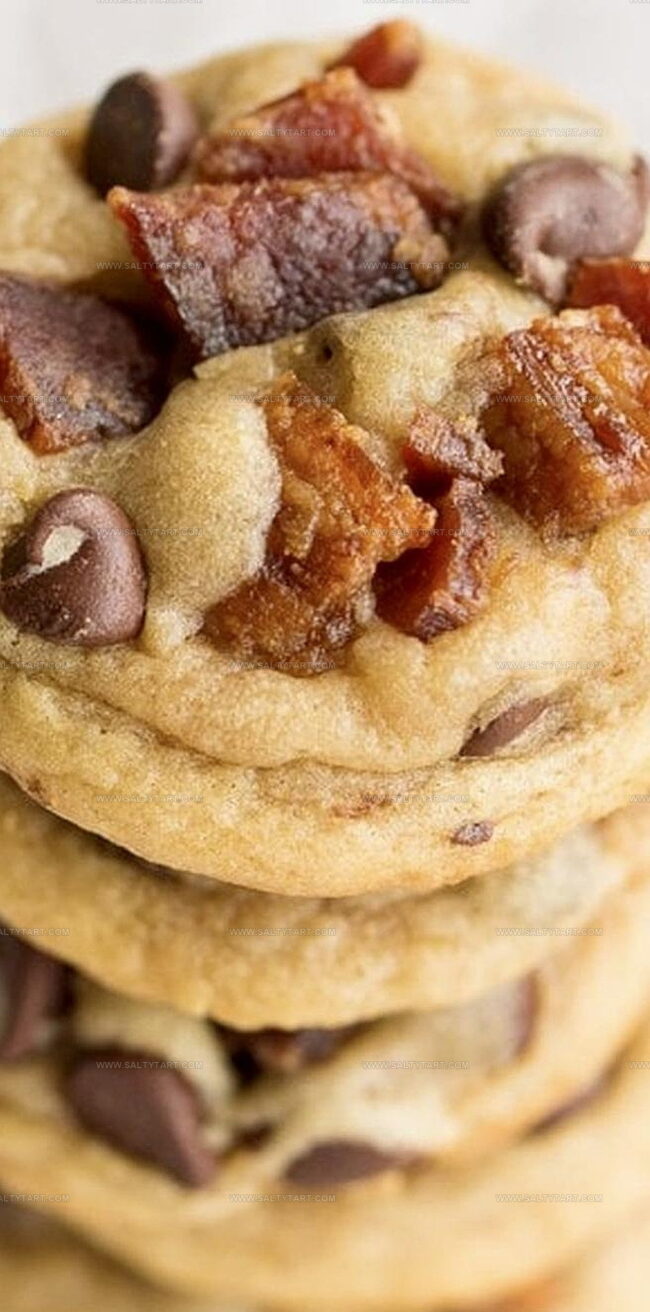 These cookies combine the sweet, crispy texture of candied bacon with traditional chocolate chip cookie dough, creating a savory-sweet flavor profile that’s both unexpected and delicious.
