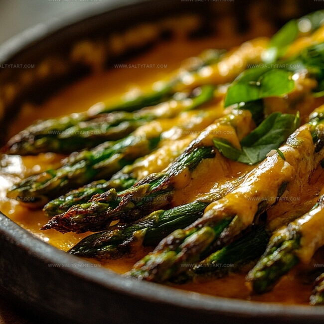 - Extract from the oven and serve while piping hot, showcasing the beautifully melted, cheese-covered asparagus.