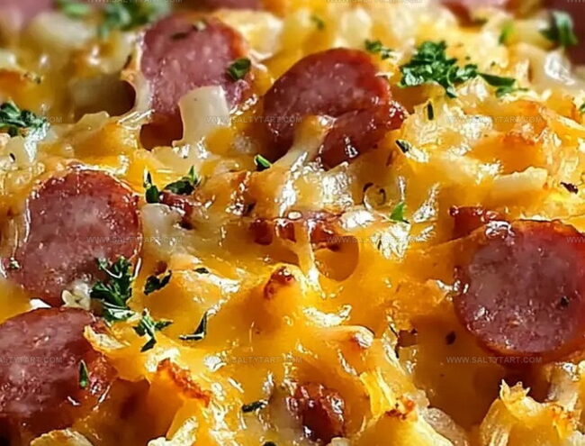 Comfort food reaches new heights with this cheesy kielbasa hashbrown casserole that promises maximum flavor with minimal effort.