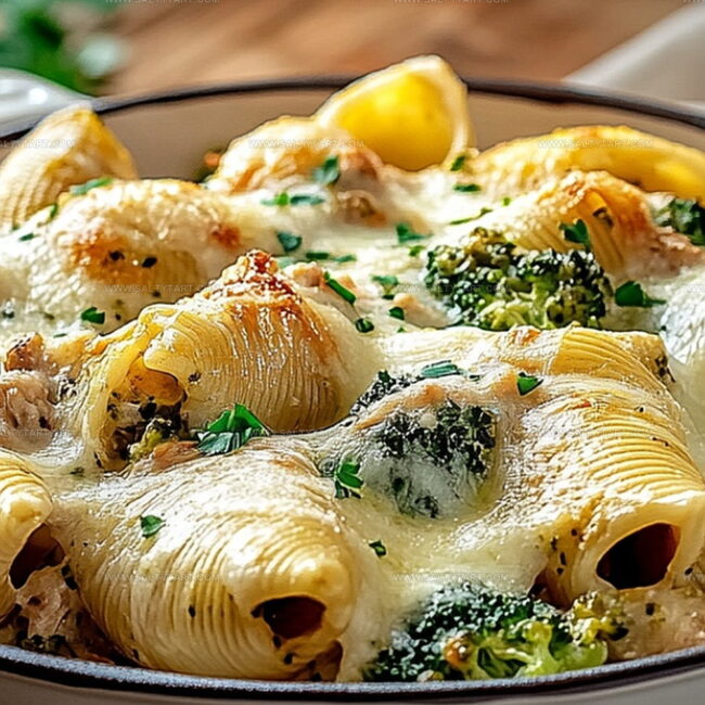 Succulent chicken and broccoli elevate classic Italian stuffed shells with creamy alfredo sauce, creating a comfort meal that seamlessly blends rich flavors. Cheesy, hearty shells promise a delightful dinner experience you’ll savor with every delectable bite.