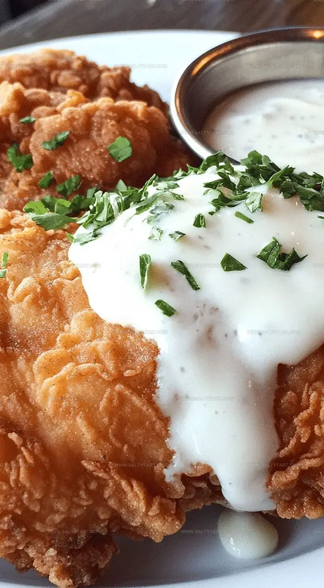 This helps drain excess oil and keeps the coating crispy. Serve immediately with country gravy, mashed potatoes, or your favorite side dish.