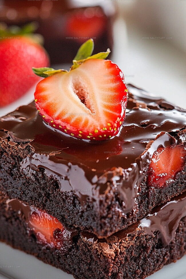 Each bite promises a luxurious experience that merges fudgy brownie texture with bright strawberry essence.