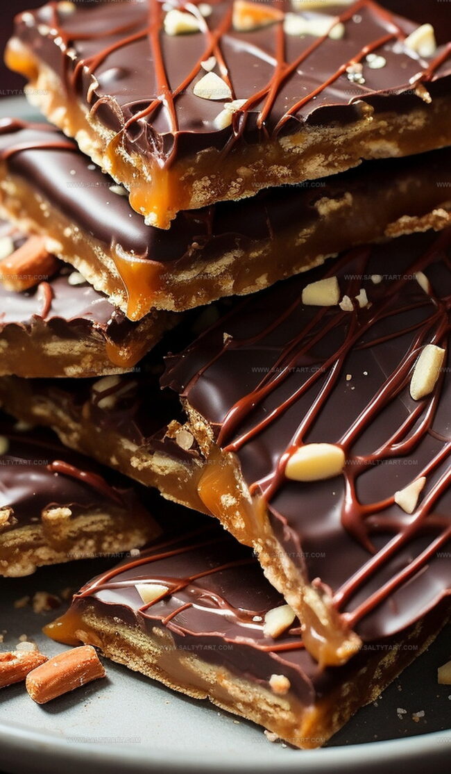 Crisp pretzels create a satisfying crunch beneath smooth chocolate layers.