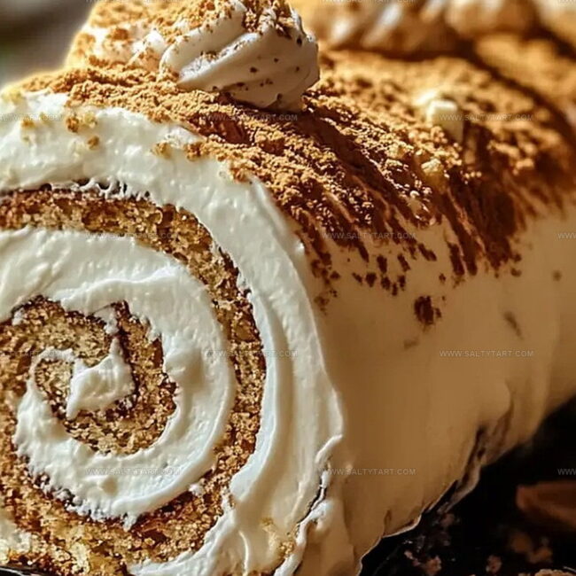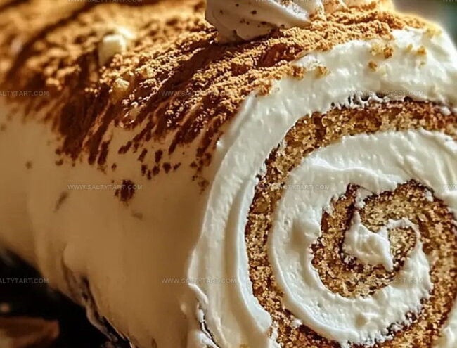 Refrigerate the cake roll for at least an hour to set. Slice and serve chilled, revealing the stunning swirl of cake and cream.