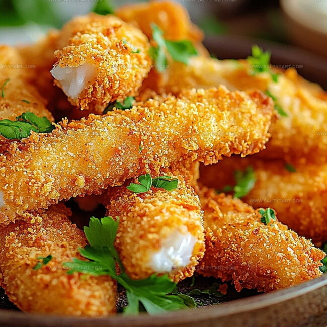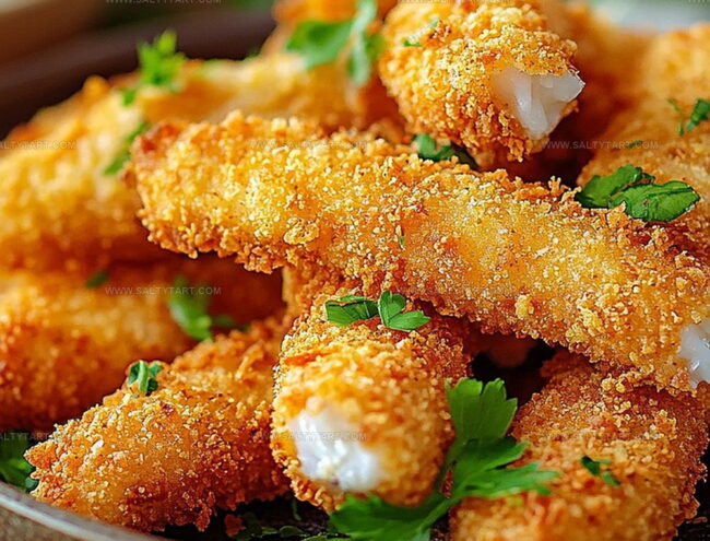 - Develop crispy exterior by carefully dredging each fish strip: first dust with flour, immerse in egg mixture, then thoroughly coat with seasoned breadcrumb blend, gently pressing to secure coating.