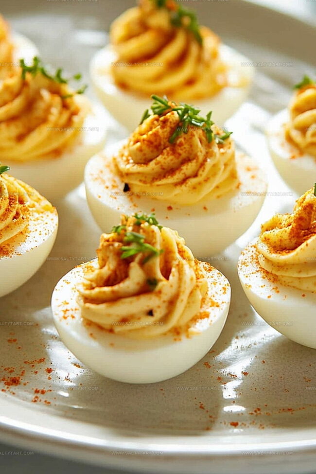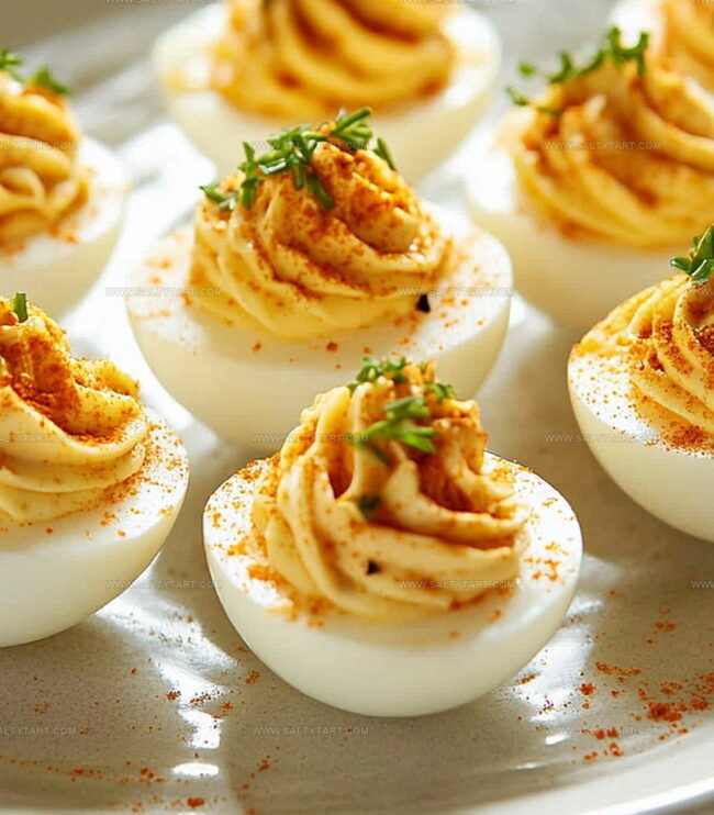 - Dust the filled eggs with a light sprinkle of paprika for classic garnish and enhanced visual appeal.