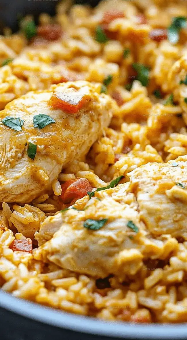 Hearty queso chicken and rice delivers comfort in a single skillet with Mexican-inspired flavors. Rich cheese sauce and tender chicken create a satisfying meal you’ll crave again and again.