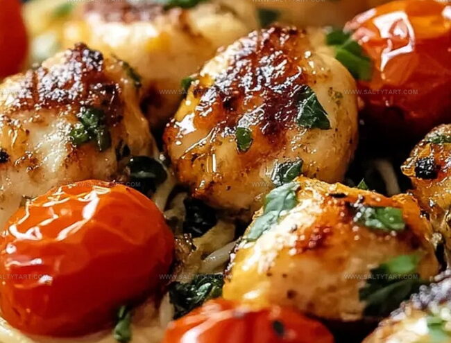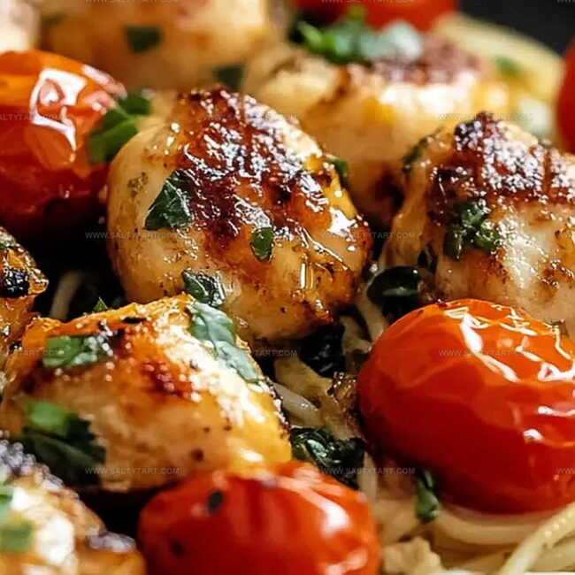 Garlic Butter Chicken Bites With Spaghetti Aglio E Olio And Blistered Tomato Recipe