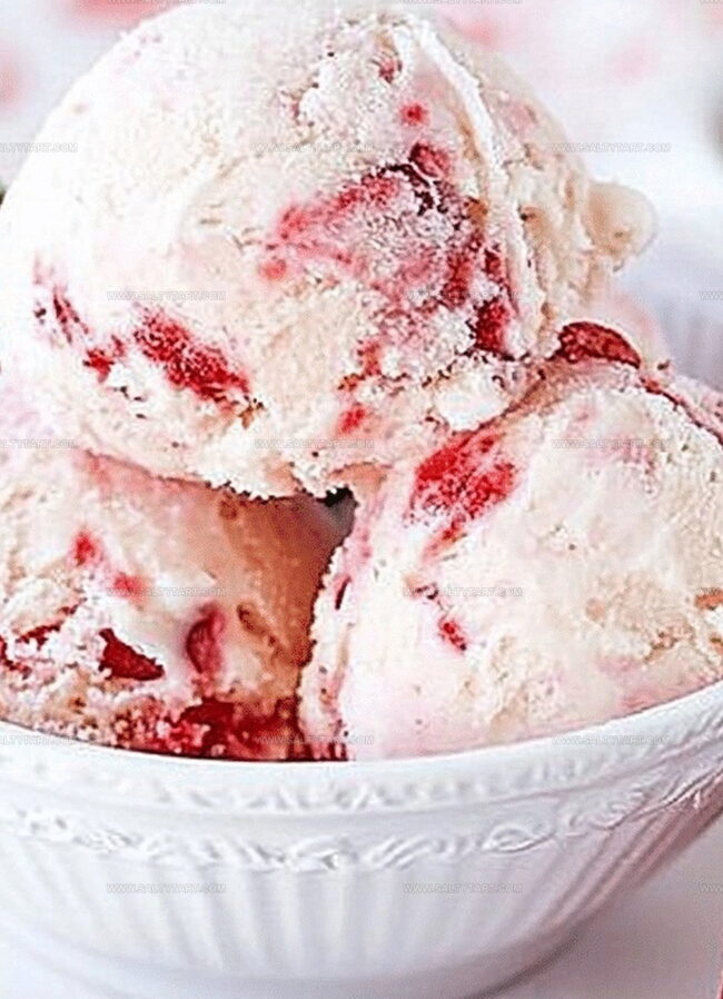 Fresh strawberries bring vibrant color and natural sweetness to every scoop.