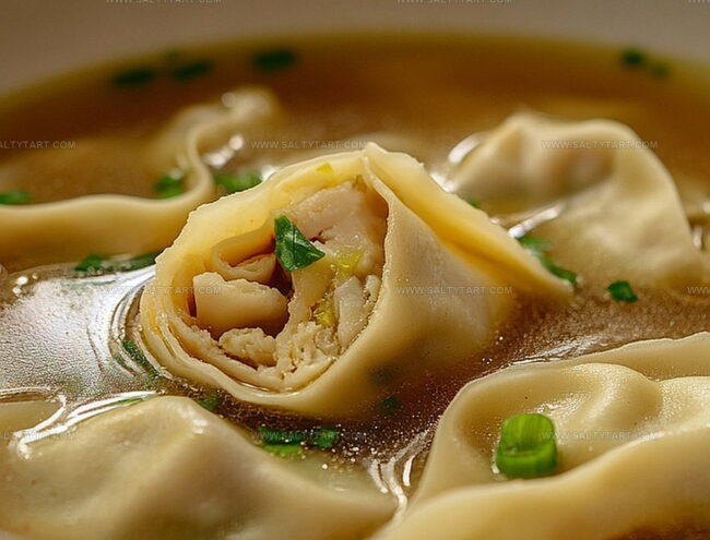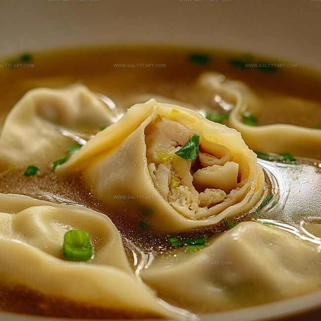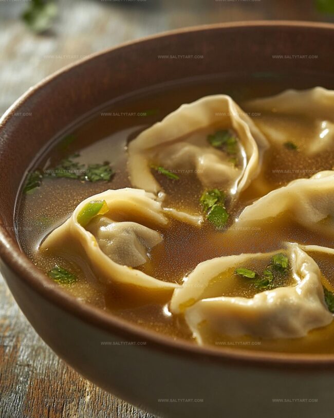 Delicate parcels of seasoned meat nestle in a fragrant, clear broth that whispers culinary secrets.