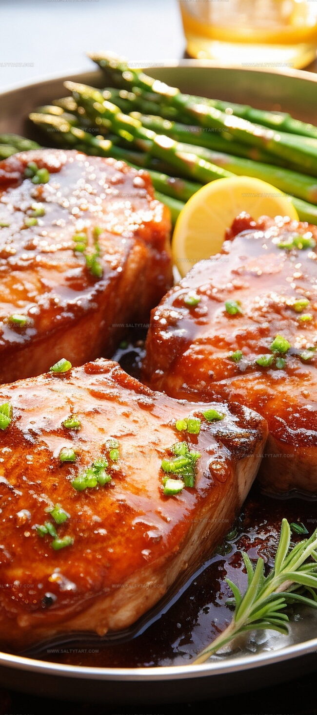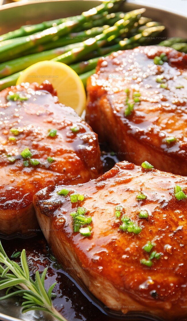 The sauce combines honey’s sweetness with garlic’s robust flavor, creating a perfect balance that caramelizes beautifully when cooked, giving the pork chops a rich, glossy coating.