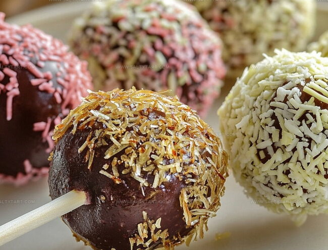 While the chocolate is still wet, sprinkle with:Place the cake pops upright in a foam block or on parchment paper to set.