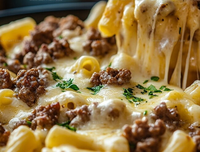 Hearty “Loaded Cheeseburger Alfredo Pasta” combines classic burger flavors with creamy pasta perfection. Rich beef, melted cheese, and silky sauce create a comforting meal that satisfies your deepest cravings in one delicious dish.