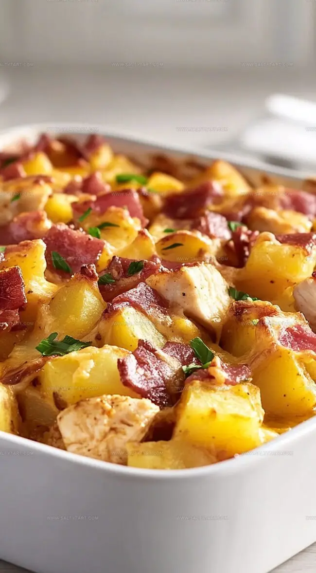 Comfort arrives with this loaded chicken and potato casserole that promises pure deliciousness in every single bite.