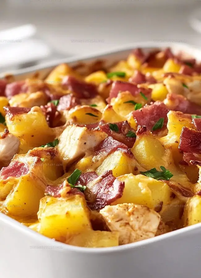 Hearty loaded chicken and potato casserole combines savory comfort with cheesy goodness. Rich layers of tender chicken, crispy potatoes, and melted cheese create a satisfying meal you’ll crave again and again.