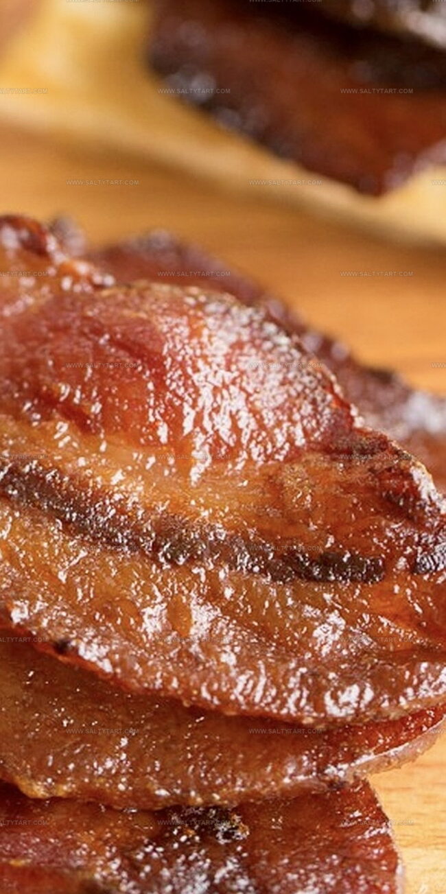 The sweet and spicy coating creates a caramelized, complex flavor that balances the bacon’s natural saltiness with maple sweetness and a hint of heat from cayenne.