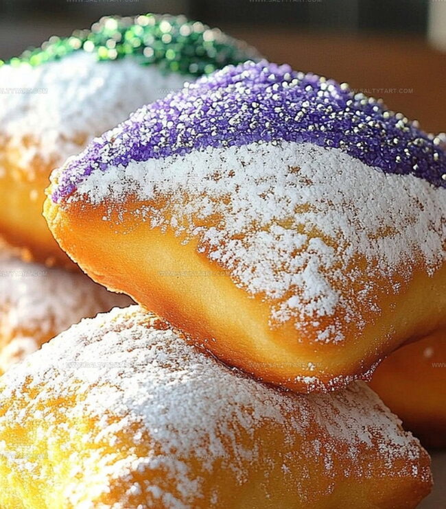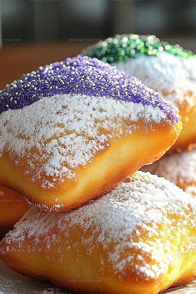 Sweet French Quarter magic comes alive with Mardi Gras beignets, powdered sugar-dusted pillows of New Orleans joy. Crispy, warm squares transport you to festive Louisiana streets with each delightful, golden bite.