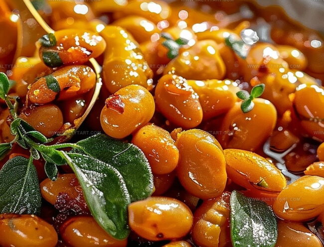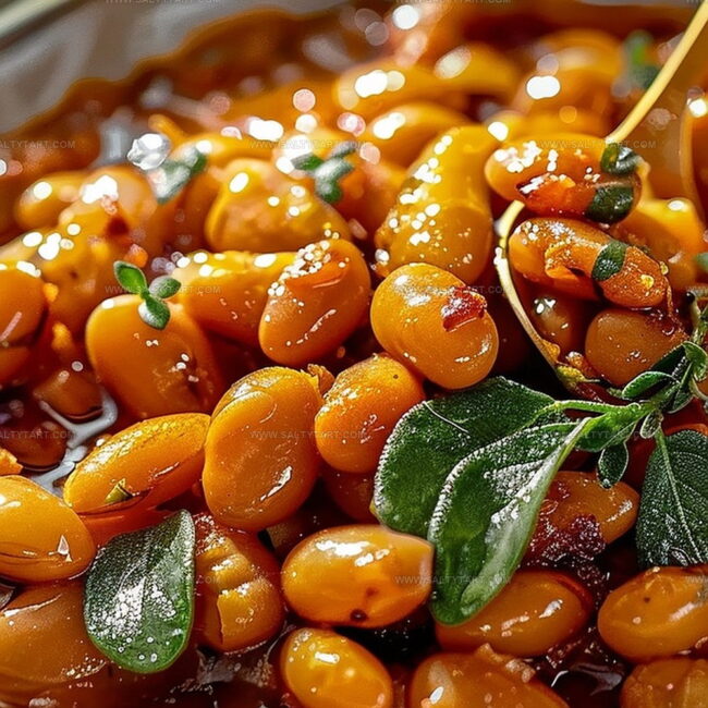 - Turn off heat and delicately garnish with freshly chopped parsley, creating a vibrant green contrast against the creamy beans.