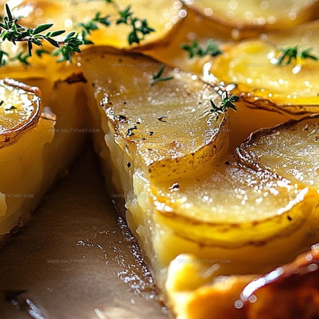Each carefully arranged potato slice creates a stunning mosaic of flavor and texture.
