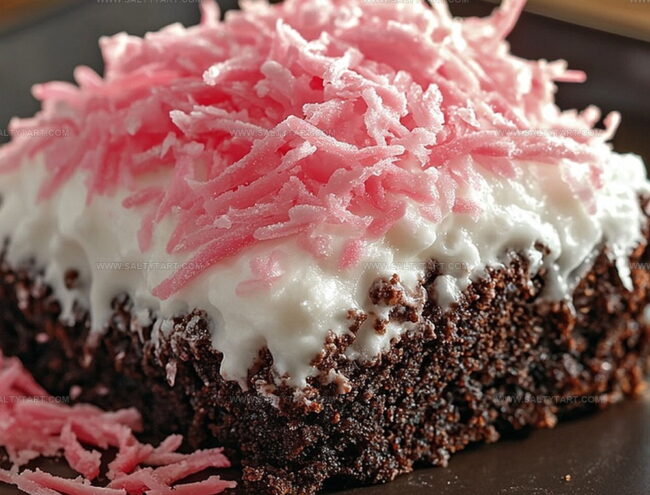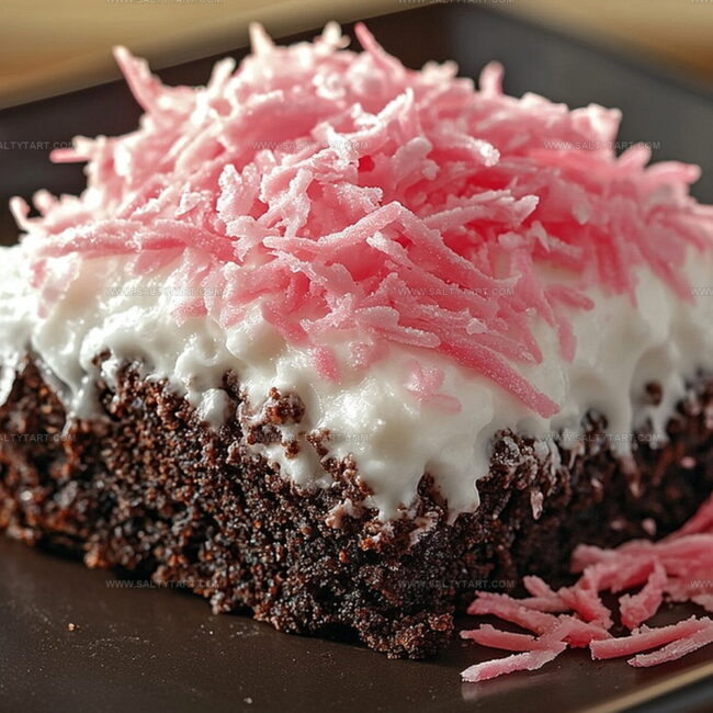 Sno Ball Brownies blend classic chocolate richness with nostalgic marshmallow coconut comfort. Luscious fudgy brownies topped with pink-tinted coconut create a playful dessert that connects childhood memories and gourmet creativity.