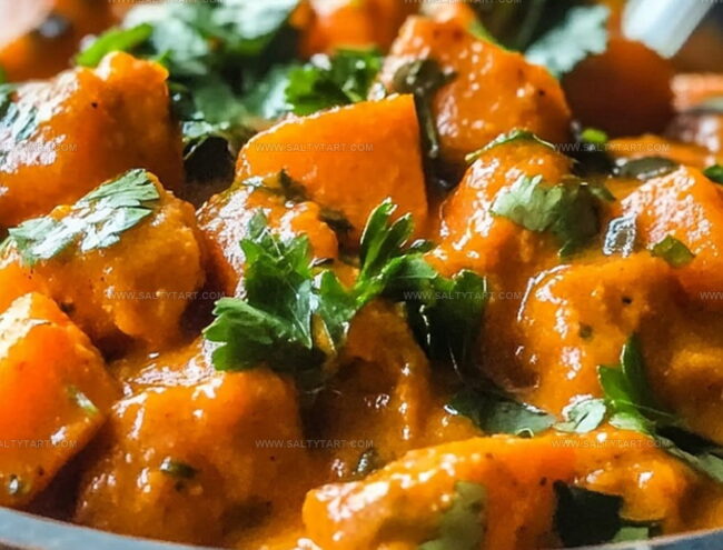 Tender chunks of sweet potato simmer in a rich, aromatic sauce that brings warmth to every bite.