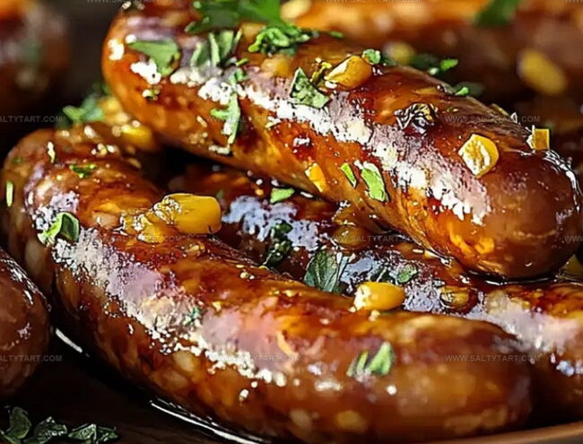 The glaze caramelizes beautifully, creating a glossy, irresistible coating that transforms ordinary sausages into something spectacular.