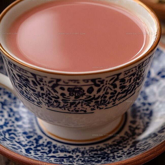 Delicate tea leaves dance with unique ingredients, creating a rose-hued beverage that surprises many palates.