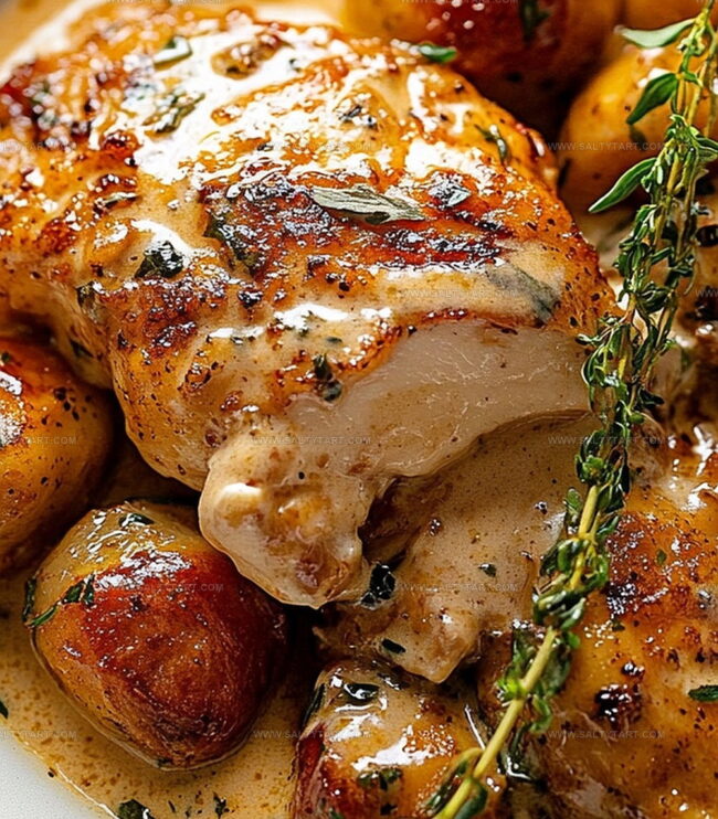 - Carefully return seared chicken to the skillet, nestling the pieces into the creamy sauce.
